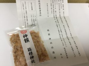 そして、大きなお札と神饌をいただいて帰ってきました。
