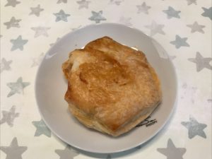 味のほうはチョコレートは似た味をしていますが、パイの部分はデニッシュなのでパイの実をイメージして食べると少し違うかなと感じます。