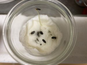 こんな感じでティッシュペーパーを水で浸して種を置き、発芽させてみます。