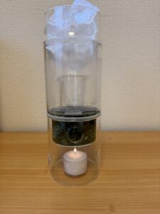 すべてガラス製で、ろうそくでゆっくり蒸留するというのが惹かれポイント。
